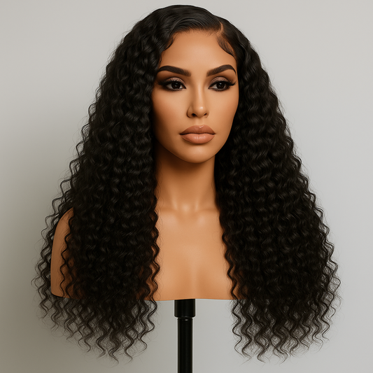 Alicia Natural Black Curly Deep Wave Glueless Wig