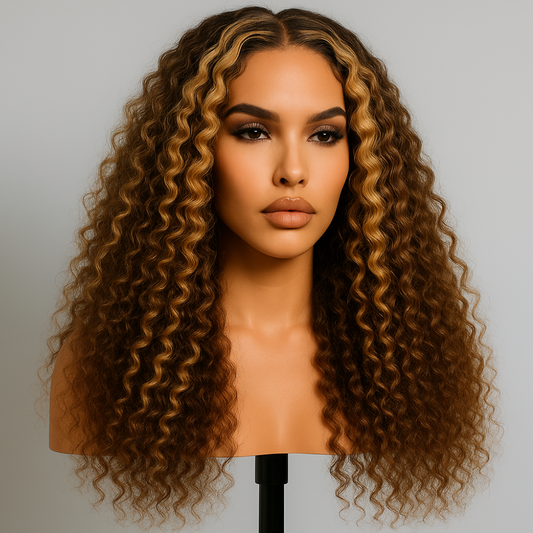Tiffany Brown Deep Wave Curly Glueless Wig