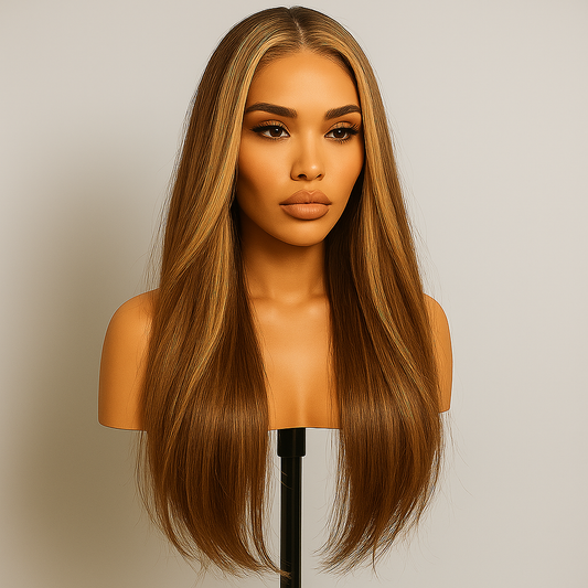 Erica Honey Blonde Ombre Highlights Straight Glueless Wig
